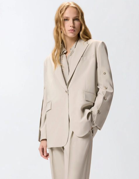 Giacca dalla linea fluida con chiusura monopetto a un bottone realizzata in misto viscosa stretch. Il capo presenta revers a lancia, due tasche frontali con patta e un taschino a filetto sul petto, ed è caratterizzato da raffinati spacchi, di cui uno sul retro e due lungo le maniche. Il modello è foderato per assicurare un maggiore comfort durante l'indosso. Abbina questa giacca ai pantaloni coordinati per un total look elegante, oppure indossala con un paio di pantaloni più casual per un outfit spezzato. - GRACE GIACCA