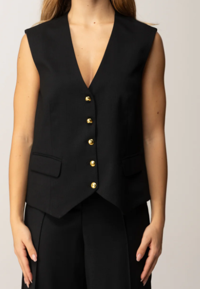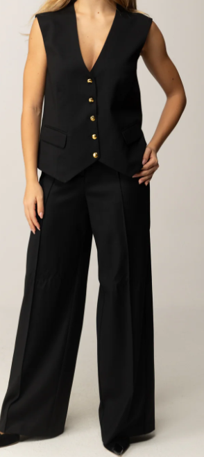 Il gilet Pinko in lana armaturata unisce leleganza sartoriale a un tocco contemporaneo, diventando un capo essenziale del guardaroba femminile moderno. Il tessuto, compatto e strutturato, conferisce una vestibilità impeccabile e un aspetto raffinato, perfetto per affrontare la stagione fredda con stile e personalità.