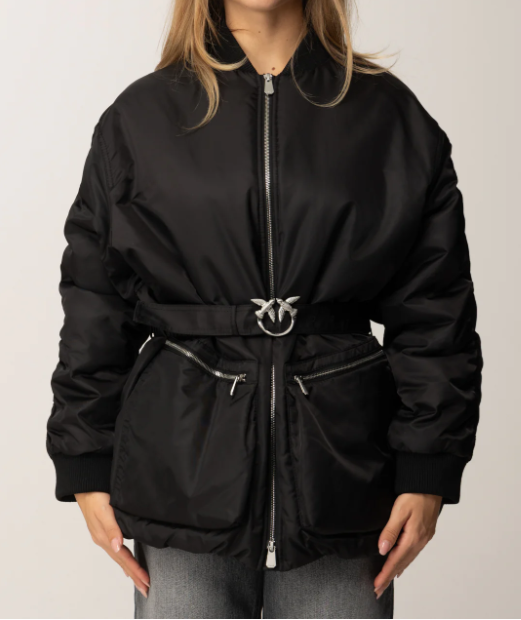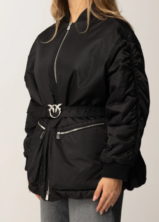 Può un giubbotto essere sofisticato? Se si tratta di un giubbotto Pinko certo che sì! Realizzato in satin tecnico, un tessuto che si presenta già sofisticato per la sua lucidità e luminosità, presenta dei tasconi sul fronte con chiusura zip, orli rifiniti a costine, arricciature lungo le maniche e, ultima ma non meno importante, una cintura al punto vita che modella la tua silhouette a partire dagli strati più esterni, con il super riconoscibile logo Love Birds in metallo.