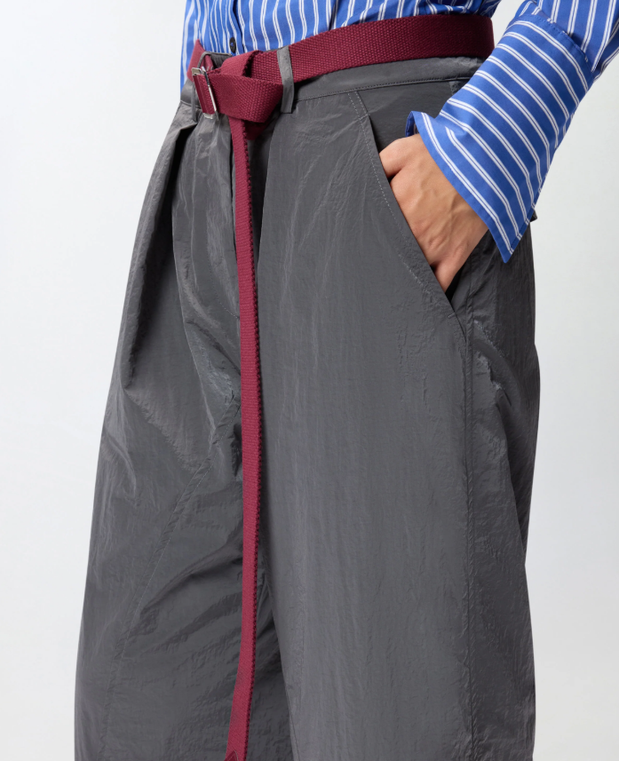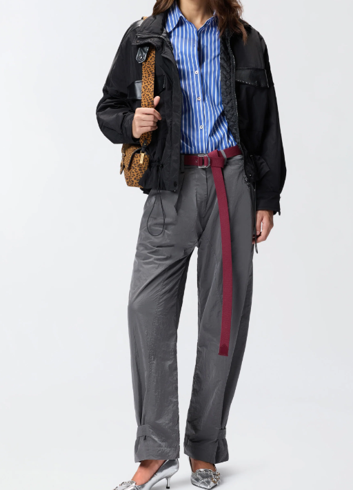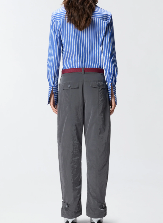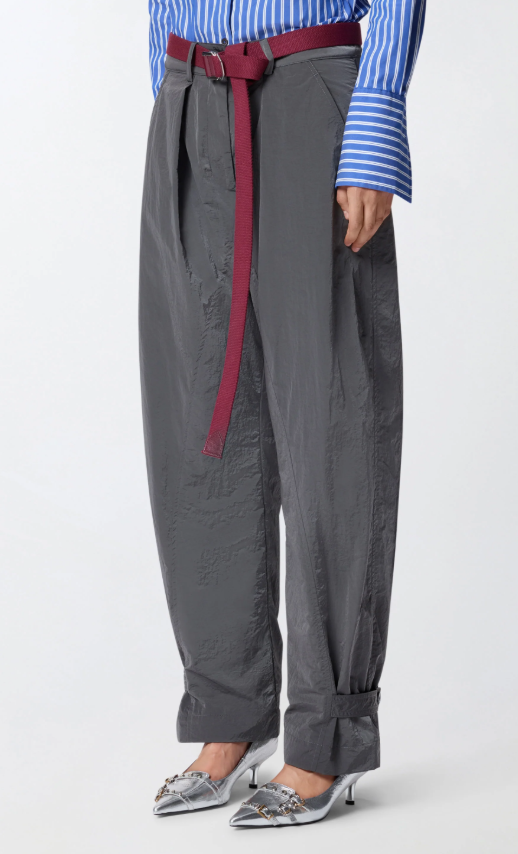 Pantaloni dalla linea morbida con cintura rimovibile in vita e tasche posteriori con patta e bottone. Il capo è realizzato in tela tecnica dal finishing opaco che dona un aspetto funzionale, ed è dotato di cinturini sul fondo che permettono di personalizzare la silhouette. Aggiungi questi pantaloni dallo stile rilassato al tuo guardaroba e lasciati sorprendere dalla qualità e dall'innovazione in puro stile PINKO.