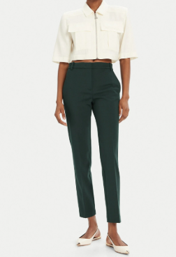 Pantaloni eleganti dalla silhouette cigarette-fit in tessuto tecnico di viscosa stretch lavorato a punto stoffa. Vita regular, completata da passanti per cintura, e tasche alla francese sui fianchi, a filetto sul retro. La gamba dalla linea dritta e affusolata è completata da piega centrale sia davanti che sul retro. Chiusura nascosta davanti. Con questi pantaloni è facilissimo costruire un outfit quotidiano con un tocco speciale, contemporaneo e trendy.