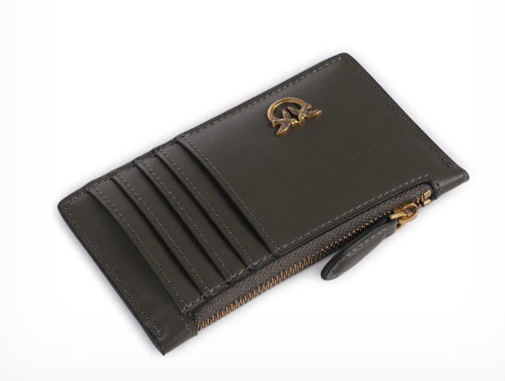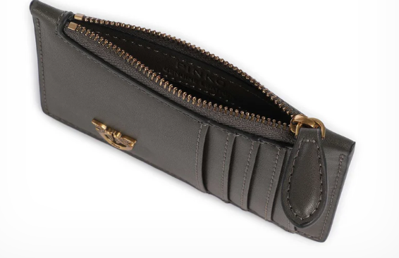 Portacarte compatto ed elegante, perfetto per l'uso quotidiano o come accessorio da viaggio. Realizzato in pelle liscia di alta qualità con dettagli metallici. Il logo Love Birds è applicato sul fronte. Chiusura a zip e layout interno con slot porta carte e taschino centrale.