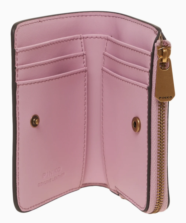 Il lussuoso portafoglio 'Mini Wallet' di Pinko è un accessorio elegante per l'uso quotidiano. Realizzato in pregiata pelle bovina, colpisce per la sua texture raffinata e la durata. Una cerniera integrale protegge il contenuto, mentre l'iconico dettaglio logo color oro sul davanti aggiunge un tocco elegante. Le dimensioni compatte lo rendono un compagno ideale per ogni borsa.