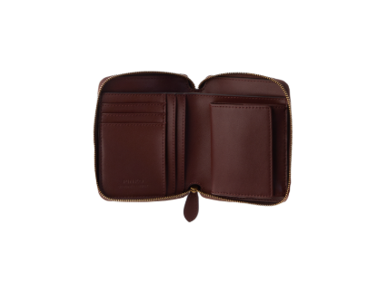 Il portafoglio è realizzato in morbida pelle mano seta, con logo in metallo sul davanti e interno foderato in polycotton, con chiusura con zip.