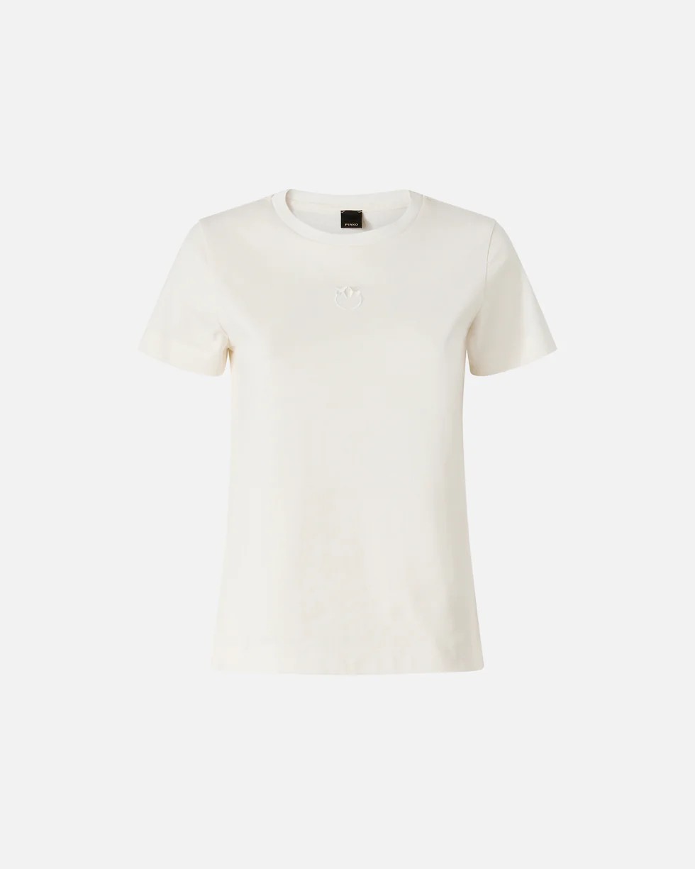 T-shirt girocollo a maniche corte realizzata in jersey di puro cotone. Il modello è personalizzato dal raffinato logo con uccellini Love Birds ricamato in tono sul petto.