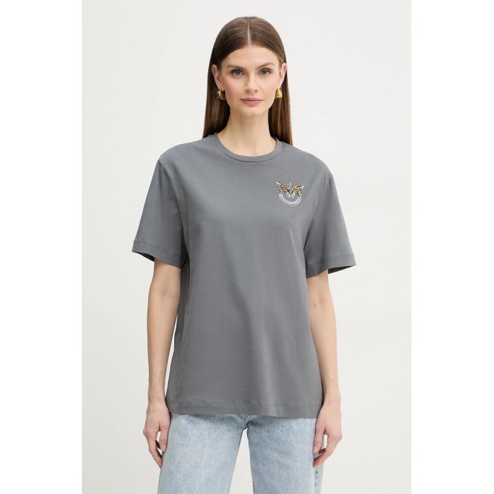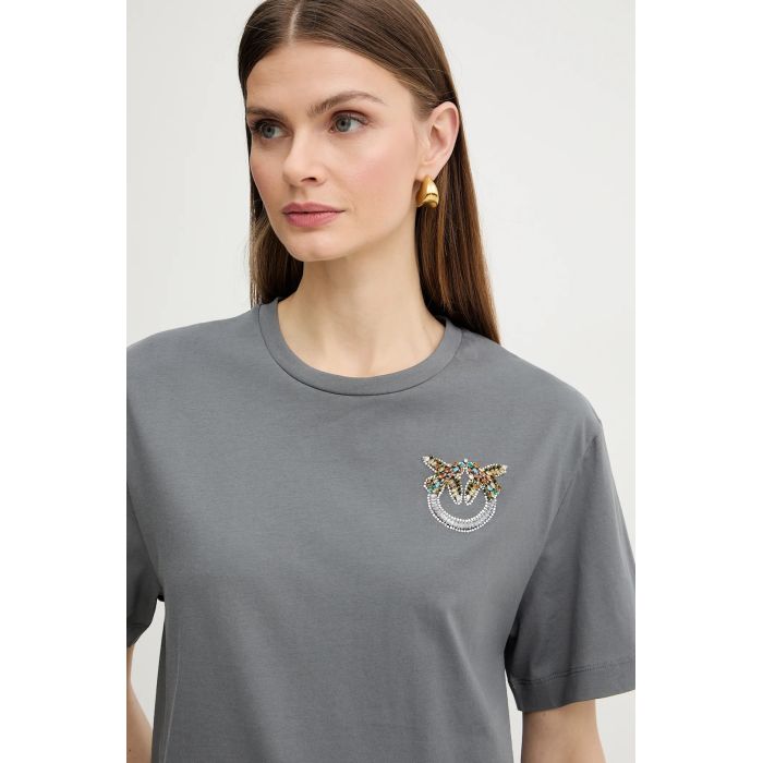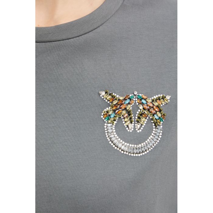 La t-shirt Strepitoso di Pinko è un capo casual-chic realizzato in morbido e confortevole cotone. Il logo ricamato con strass sul davanti aggiunge un tocco di brillantezza e raffinatezza, rendendola perfetta per chi cerca un look elegante ma informale. Il girocollo e la vestibilità semplice completano il design, rendendo questa t-shirt versatile per ogni occasione.