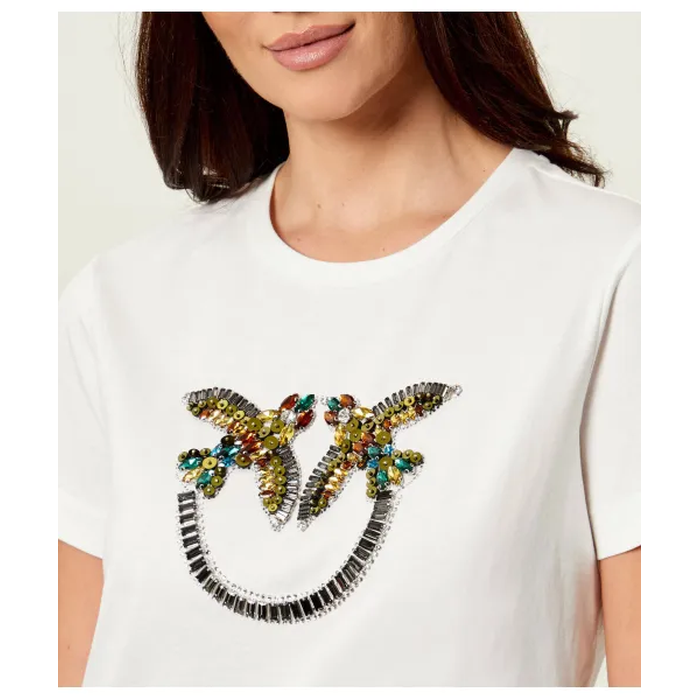 - Maxi logo LOVE BIRDS ricamato con strass, paillettes e pietre sul davanti