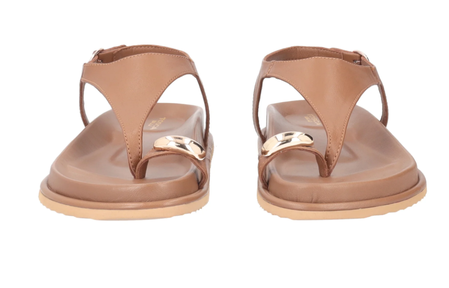 Tosca Blu presenta per la nuova collezione questo sandalo infradito, proposto nel delicato colore biscotto e pensato per accompagnare con stile la stagione estiva. Realizzato in pelle, si distingue per la fascia centrale e per il cinturino regolabile alla caviglia, che assicura una calzata stabile e personalizzata.
