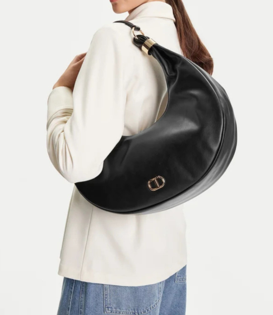 La borsa hobo Eclipse di Twinset è un accessorio dallo stile contemporaneo e sofisticato, realizzato in materiale effetto nappa di agnello dal finish semiopaco, morbido e liscio al tatto.