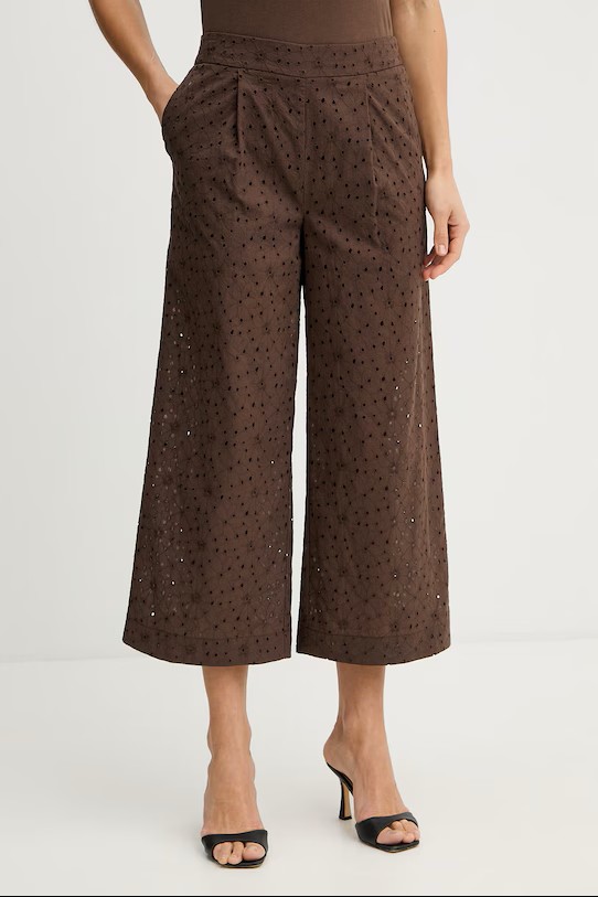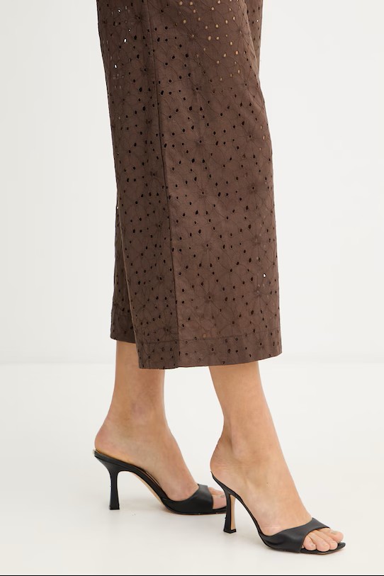 Twinset pantaloni reizzati in tessuto con applicazione.