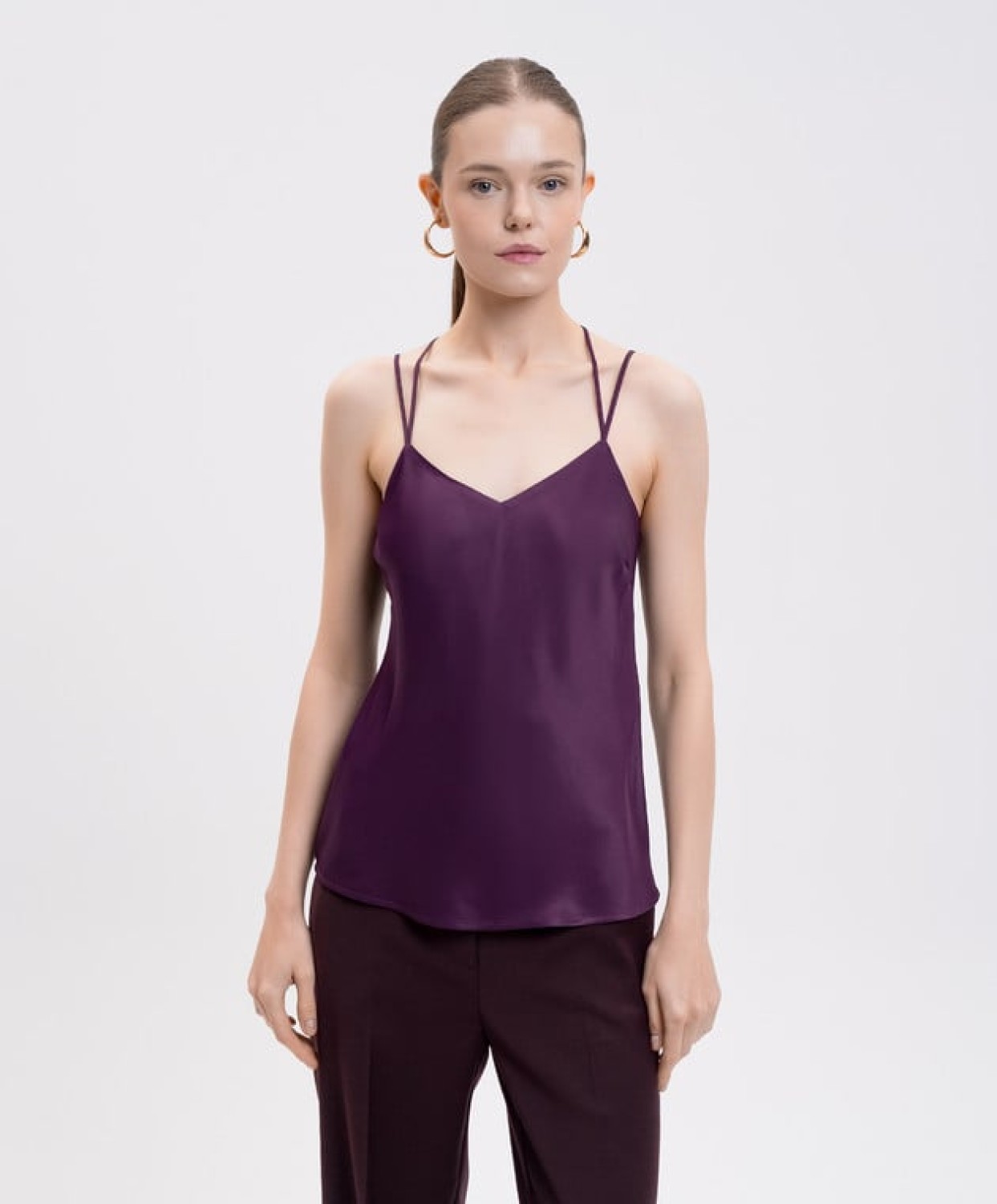 Top TWINSET in viscosa. Presenta spalline sottili e doppie, incrociate sul retro, scollo a V, logo ovale a T sul retro, vestibilità dritta e ampia.