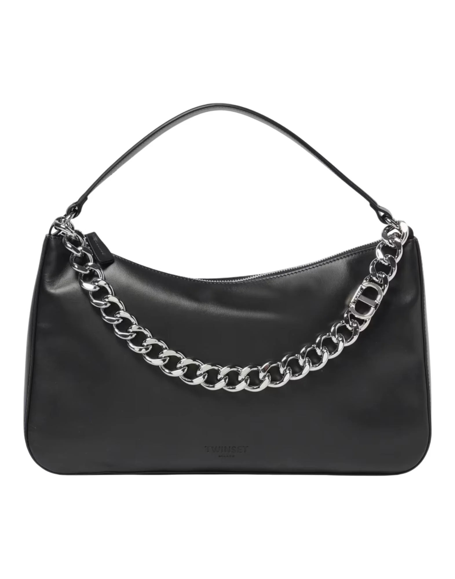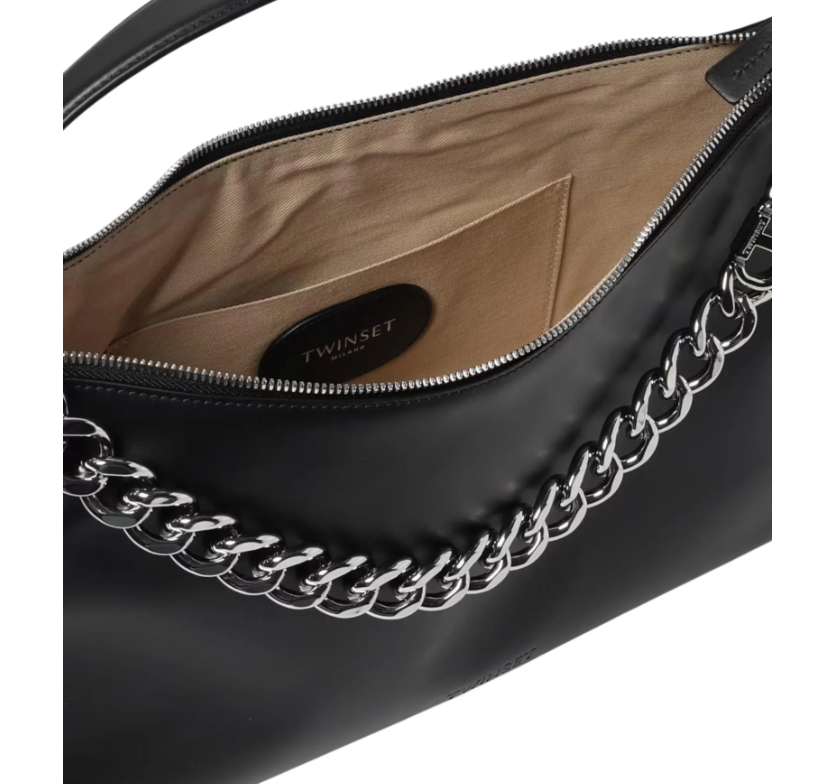 La borsa Liliane Twinset esprime un'eleganza senza tempo grazie al design classico e alle finiture raffinate. Realizzata in morbida pelle di vitello liscia, presenta una linea rettangolare dal profilo pulito e un manico intrecciato in maglia metallica e pelle, che aggiunge un tocco distintivo al modello. Dotata di chiusura superiore con zip, è pensata per essere portata sia a mano che a spalla, perfetta per completare look quotidiani o serali con classe.