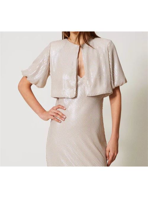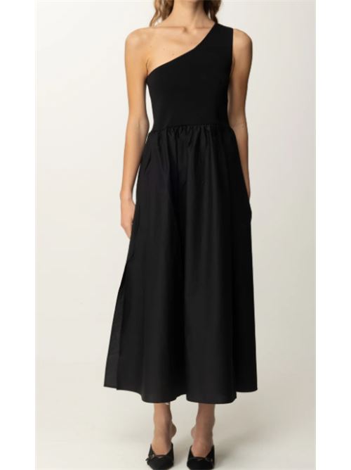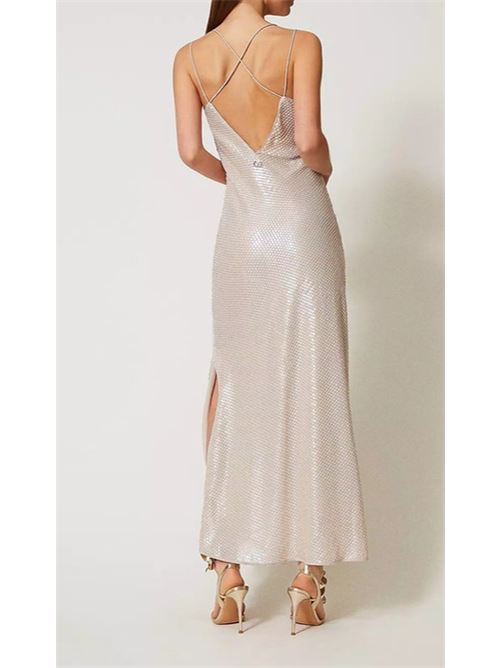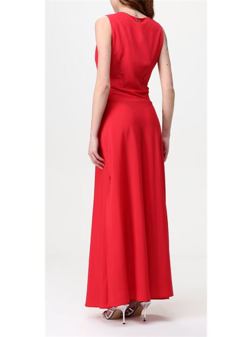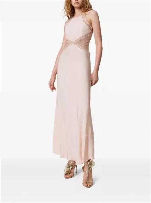 Abito lungo smanicato in raso di viscosa con scollo bordato in pizzo Twinset